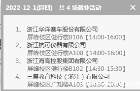2022年12月1日—浙江杭可仪器有限公司等招聘会