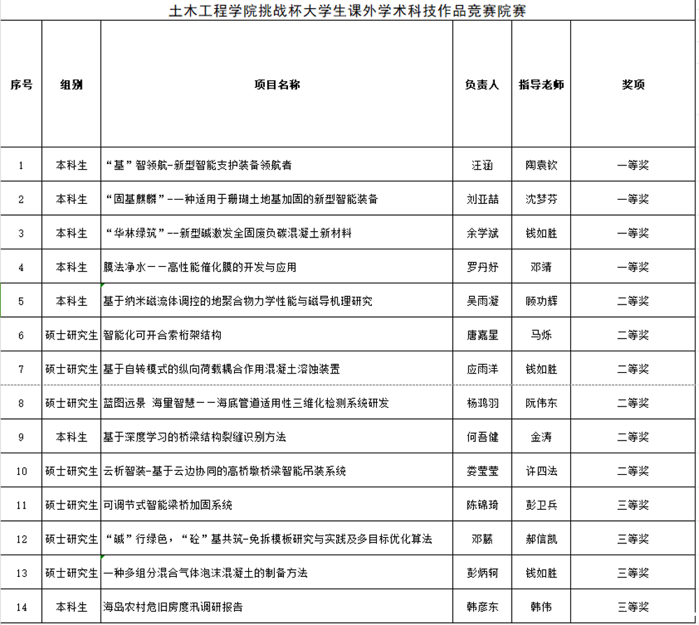 现将土木工程学院“挑战杯”大学生课外学术科技作品竞赛院赛获奖名单公示如下。公示时间:2024年12月11日——2024年12月14日。
